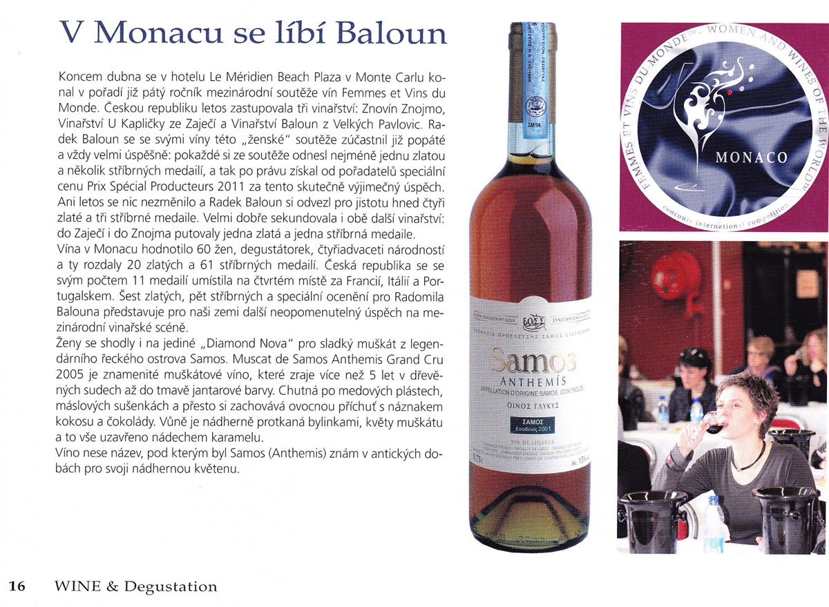 Vinařství Baloun získalo v Monaku Prix Special Producteurs 2011 plus čtyři zlaté a tři stříbrné medaile